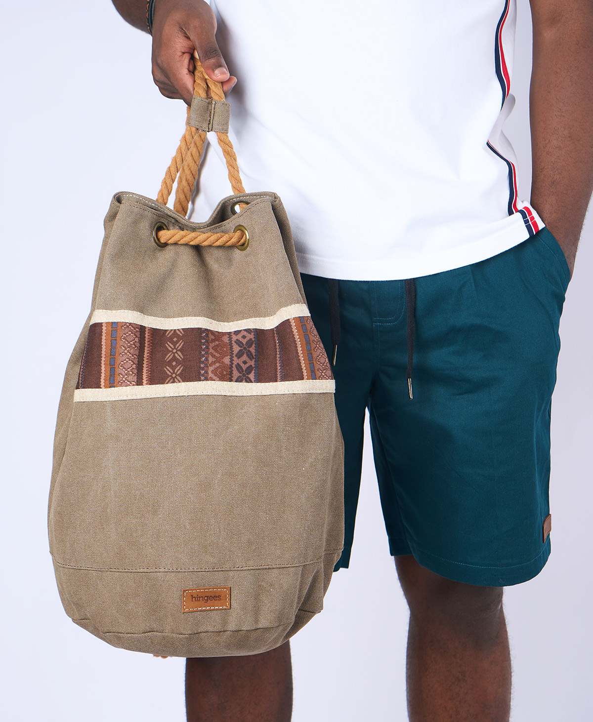 Crafted in collaboration with PapaHandmadeit, the canvas rucksack stands as the epitome of unwavering reliability and unparalleled style. It’s aesthetic and functional maxims are consistent with the Papahandmadeit™ x Hingees design processes.