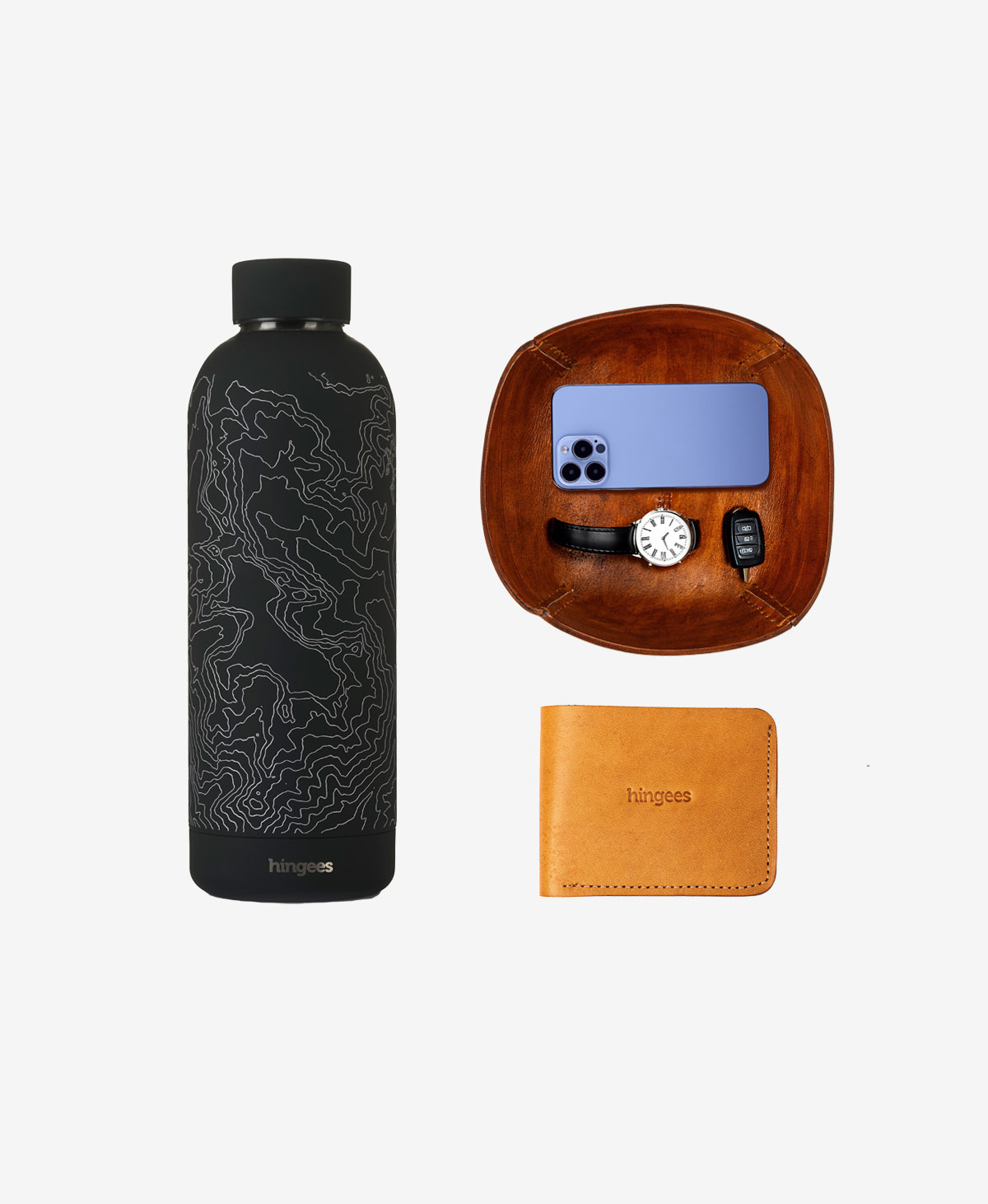 Crafted for the one who’s always on the move—mentally or physically, this bundle brings function and elegance together. Stay hydrated on the go, keep your daily essentials in check, and carry your story in a wallet that’s crafted for the long haul.